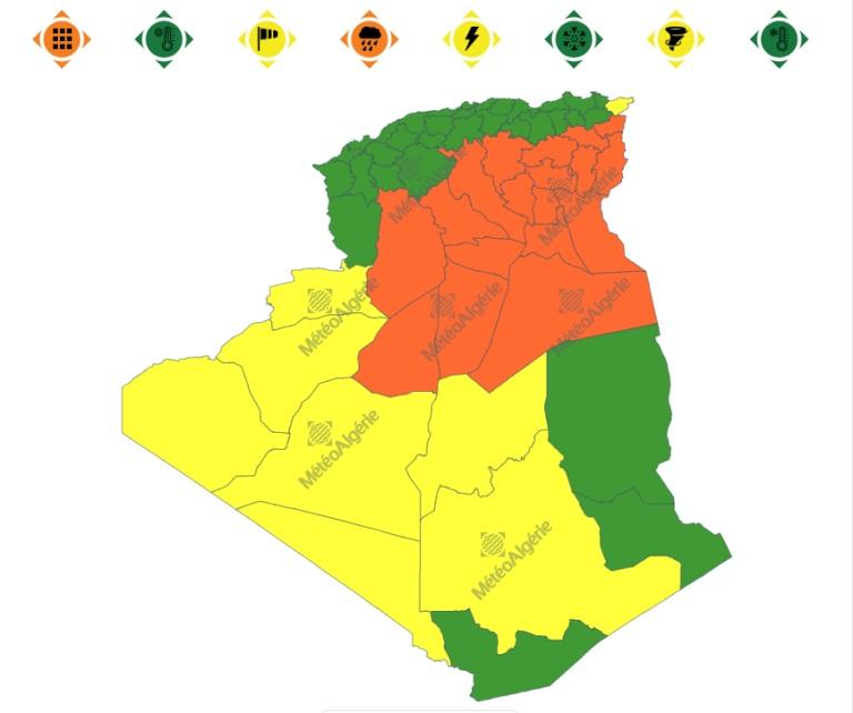 وحملت النشرية أيضا تنبيها من المستوى الأول يخص تساقط أمطار عبر: الطارف، بني عباس، إن صالح، تمنراست وبرج باجي مختار.